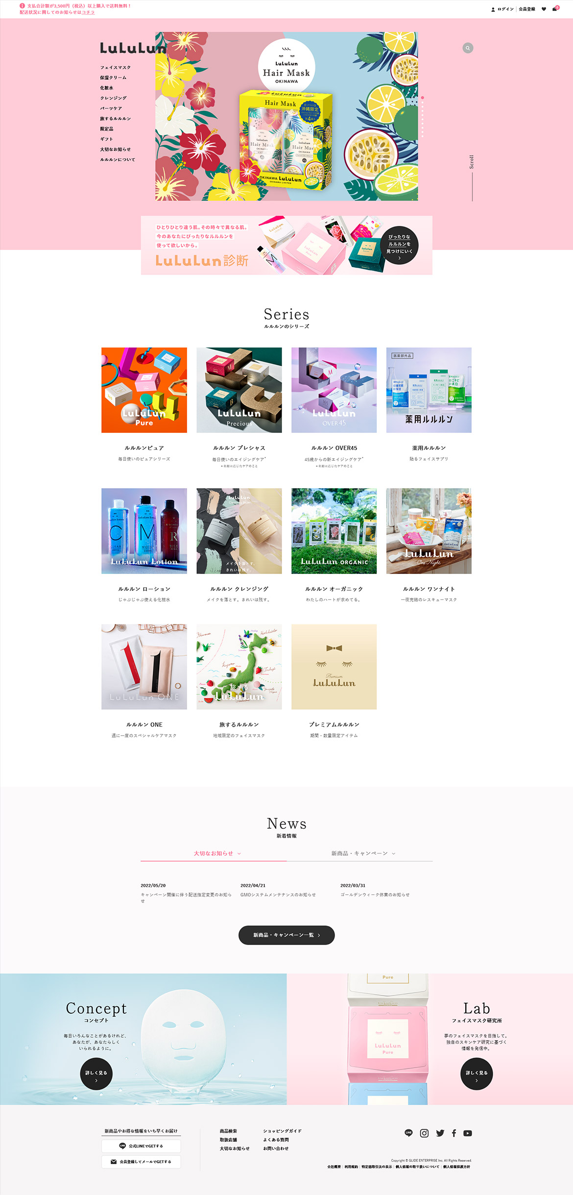 フェイスマスク、化粧水などの美容品を販売しているオンラインストアです。
