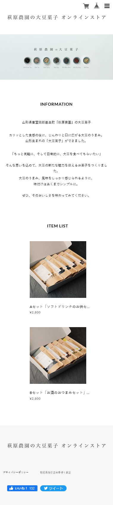 山形県東置賜郡高畠町『萩原農園』の大豆菓子を販売しているオンラインストアです。