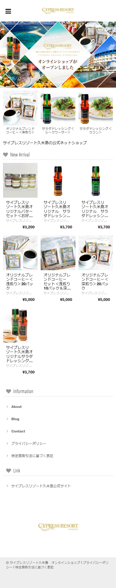 久米島のリゾートホテル、サイプレスリゾート久米島様のオンラインショップです。