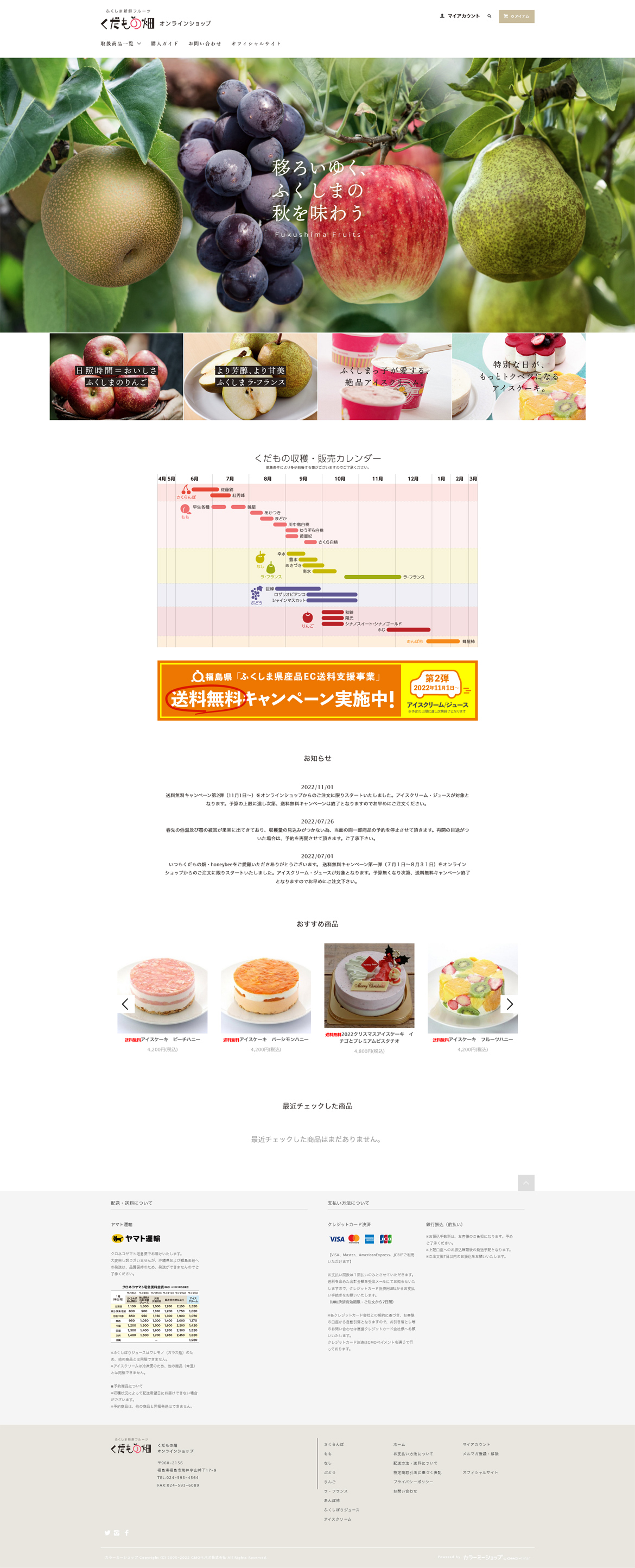 メインビジュアルの写真とテキストが季節に合わせてあり、季節の果物を購入したくなります。