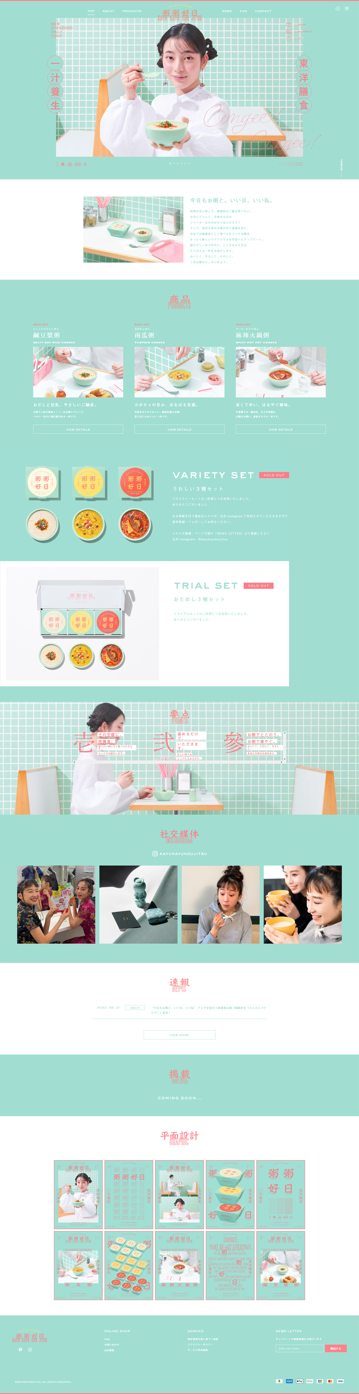 プロダクトの包装と合わせた色合いや、各コンテンツのタイトルを漢字で統一するなど、ユニークな世界観を体現しています。