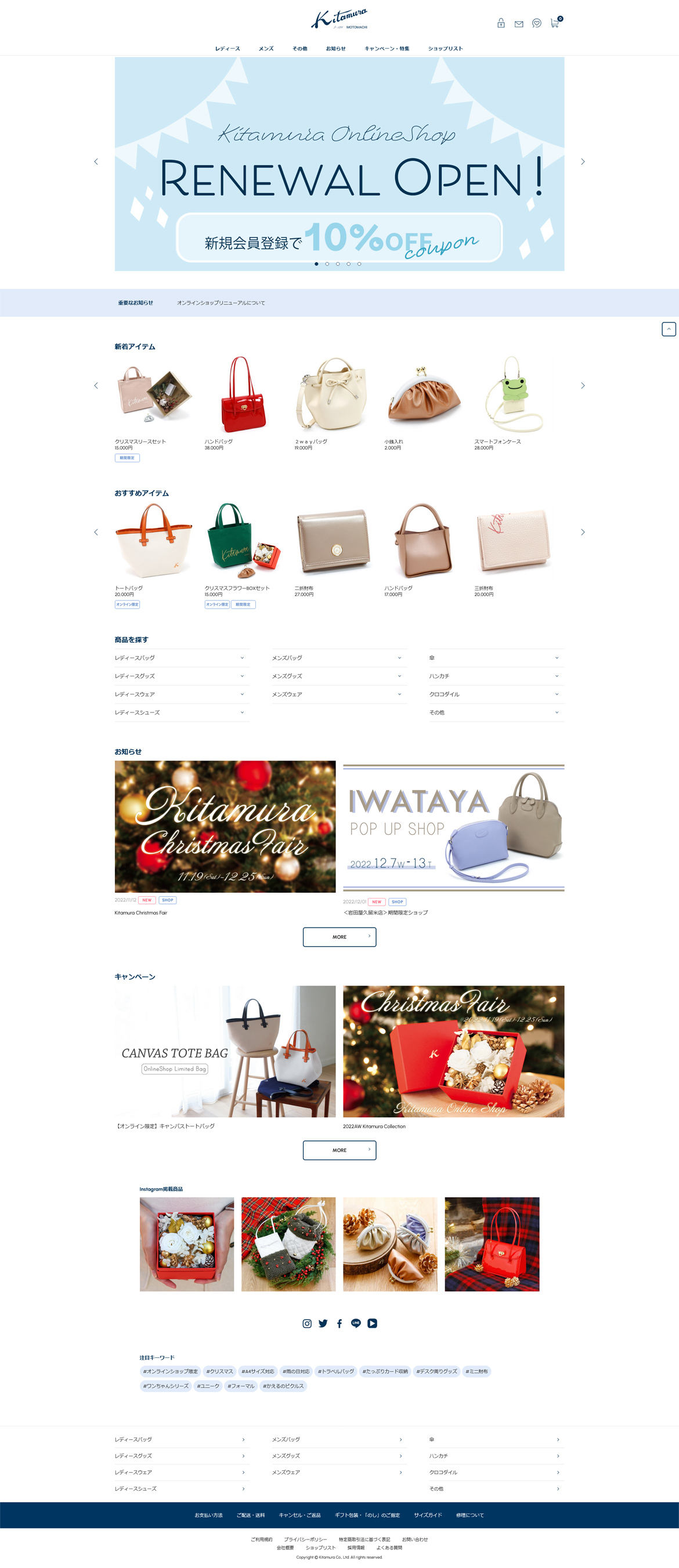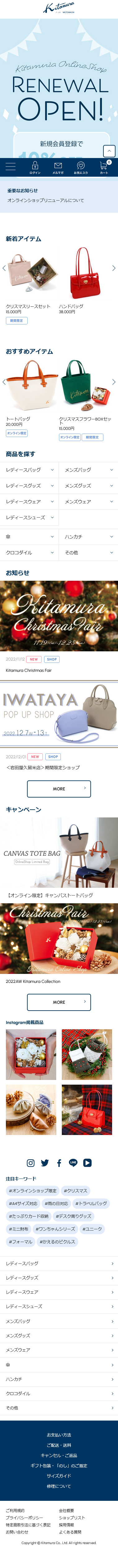 横浜元町ハンドバッグの「キタムラ(Kitamura)」の公式オンラインショップです。