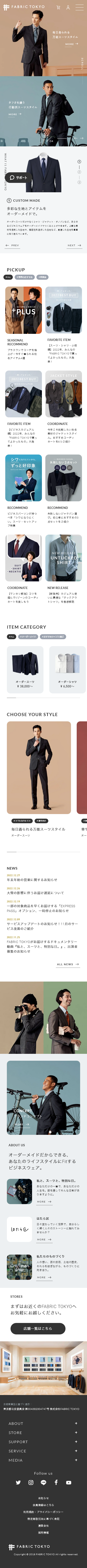 FABRIC TOKYOは、オーダースーツを注文できるオンラインストアです。