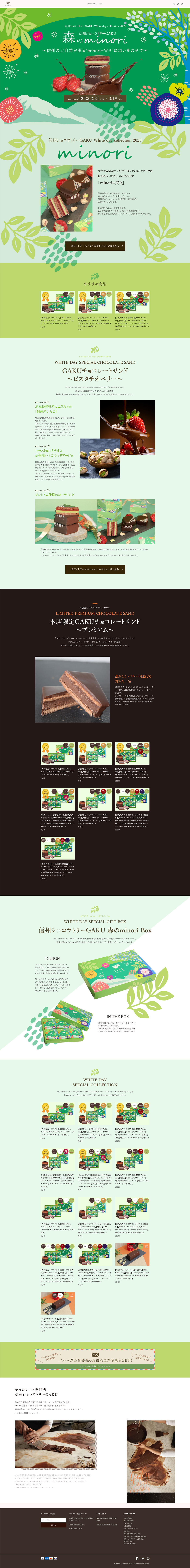 チョコレート専門店「信州ショコラトリーGAKU」のホワイトデー商品紹介LPです。