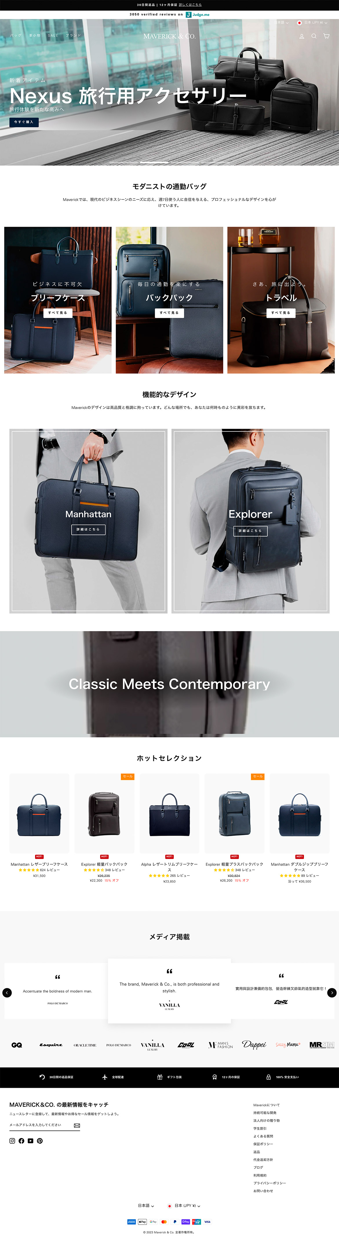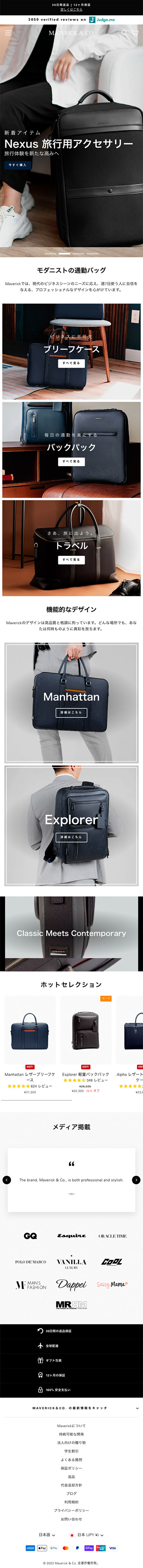 ビジネスブリーフケース、ハンドバッグ、バックパック等を展開するファッションブランドのECサイトです。