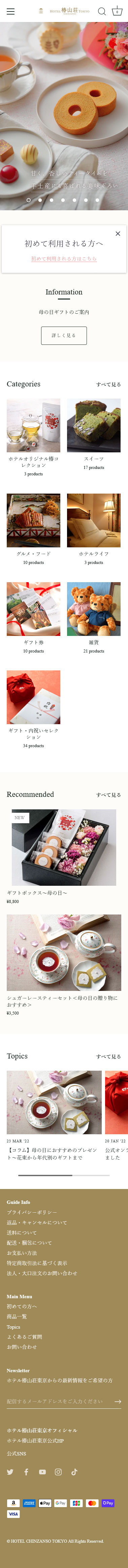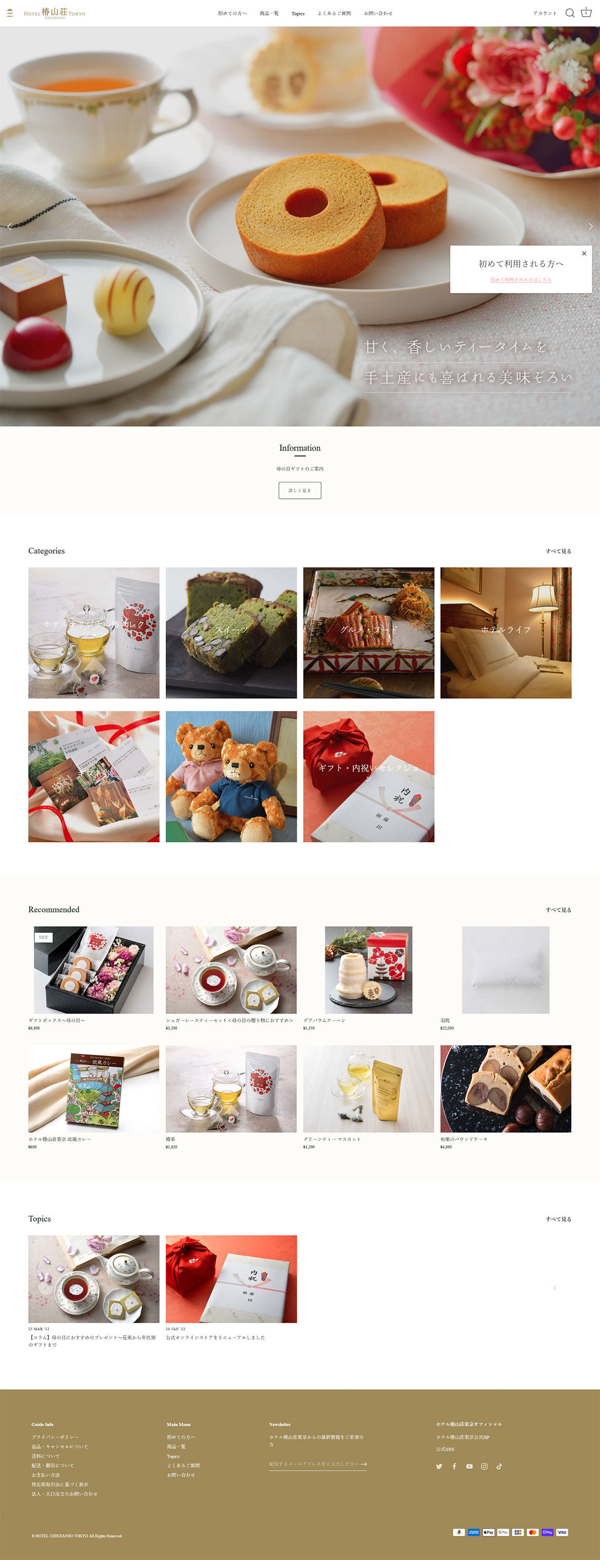 ホテル椿山荘東京様のオリジナル商品やギフト券、グルメ・スイーツが購入できるオンラインストア。