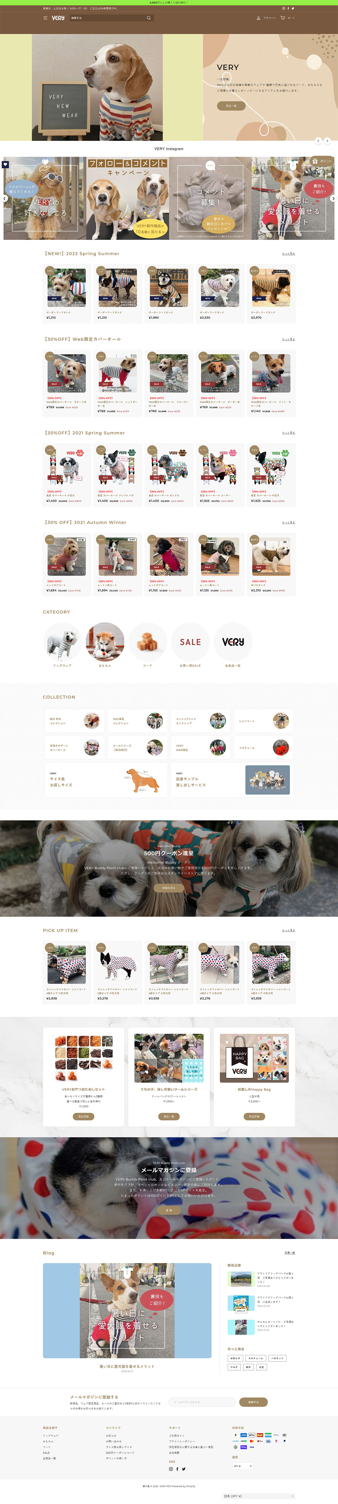 犬の洋服を小型犬から大型犬までリーズナブルな価格で多種多様に取り揃えているオンラインストア「VERY-PET」。