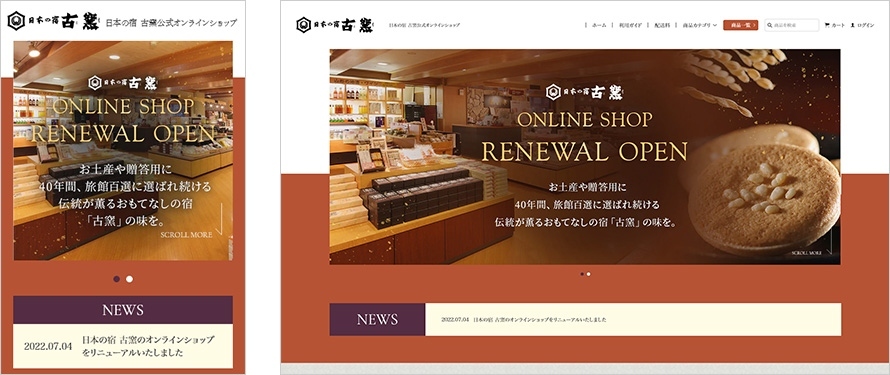 日本の宿 古窯公式オンラインショップ https://shop.koyoga.com/ 構築方法: Shopify(ショッピファイ) 業界・業種: 宿泊業 旅館 食品・飲料 地域: 山形県 上山市 プロが選ぶ日本のホテル・旅館100選にて「40年以上連続TOP10入り」の旅館、古窯のおせちを販売しているECサイトです。 shopifyを大幅カスタマイズしトップページの大部分の項目を管理画面より更新可能にしています。