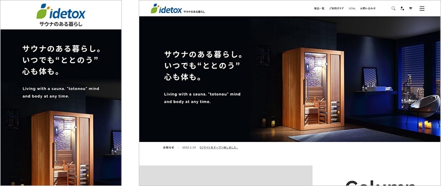 idetox 公式オンラインショップ https://idetox.jp/ 構築方法: Shopify(ショッピファイ) 業界・業種: 小売業 地域: 福岡県 福岡市 idetox 公式オンラインショップは、自宅や海、川などでお楽しみいただけるサウナを販売しているECサイトです。 shopifyを大幅カスタマイズしトップページの大部分の項目を管理画面より更新可能にしています。