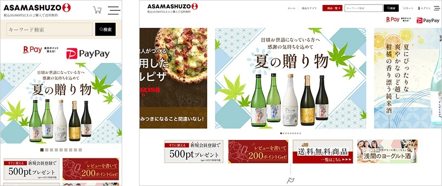 浅間酒造公式オンラインショップ https://www.asama-shuzo.jp/ 構築方法: makeshop(メイクショップ) 業界・業種: 小売業 酒 食品・飲料 地域: 群馬県 吾妻郡 浅間酒造公式オンラインショップは、年間1万本売れるヨーグルト酒や、IWC受賞酒のプレミアム大吟醸「秘幻」などを販売しているECサイトです。 makeshopのクリエイターモードで構築いたしました。